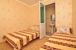 | Мебель: | односпальные или двуспальная кровати, стулья, стол, вешалка, зеркало |