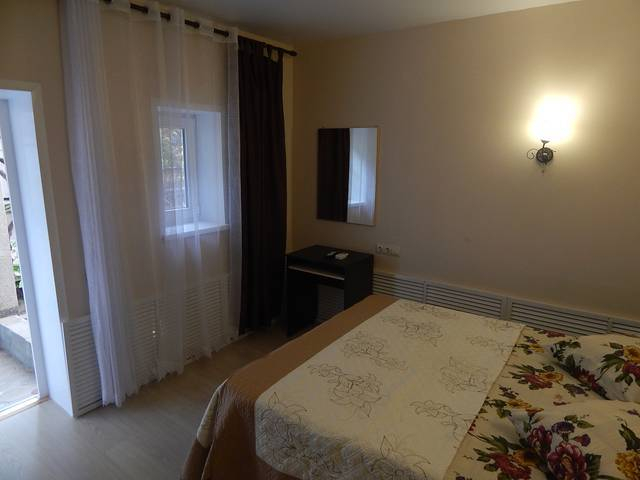 | Мебель: | односпальные или двуспальная кровати, кресло-кровать, шкаф, прикроватные тумбочки, вешалка, зеркало |