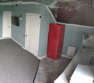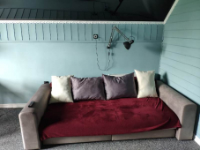 | Мебель: | двуспальная кровать, диван-кровать, стулья, шкаф, прикроватные тумбочки, стол, вешалка, зеркало, кухонный гарнитур, обеденная зона |