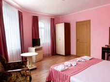 | Мебель: | односпальные и двуспальные кровати, стулья, шкаф, прикроватные тумбочки, вешалка |