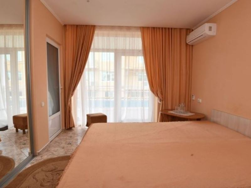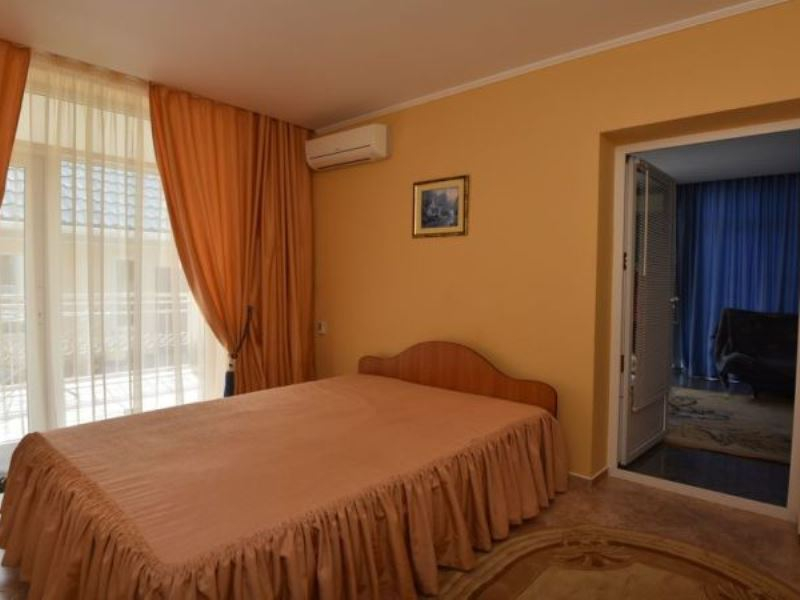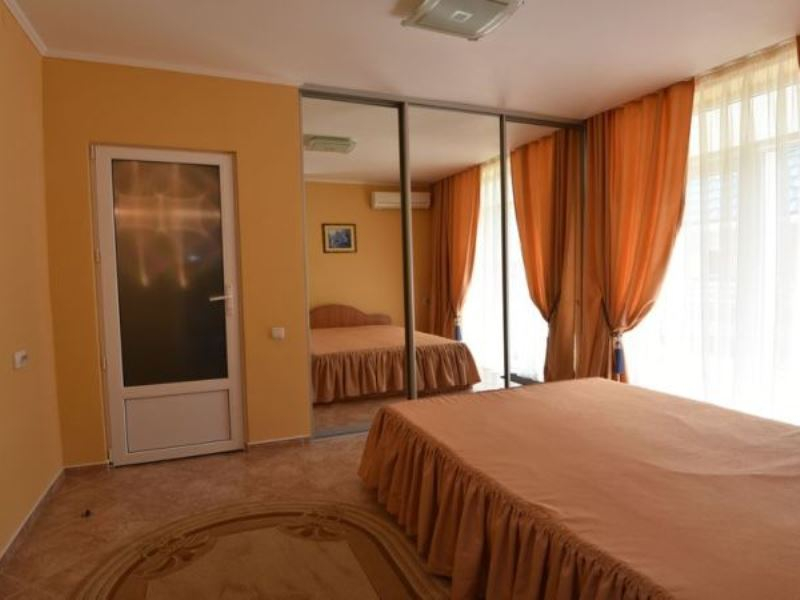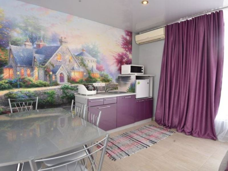 | Мебель: | двуспальная кровать, шкаф, прикроватные тумбочки, обеденный стол, кухонный уголок |