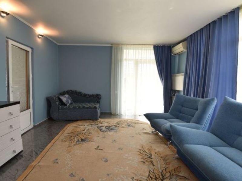 | Мебель: | двуспальная кровать, шкаф-купе, пуфик, прикроватные тумбочки, журнальный столик, |