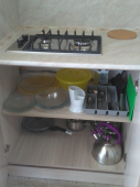 | Мебель: | двуспальная кровать, диван-кровать, стулья, журнальный столик, стол, вешалка, зеркало, кухонный гарнитур, обеденная зона |