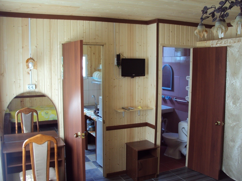 В отдельных домиках есть еще индивидуальная оборудованная кухня.