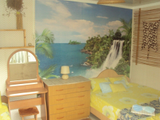| Мебель: | односпальные или двуспальная кровати, шкаф, стулья, пуфики, прикроватные тумбочки, стол, зеркало |