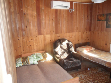 3х-местный номер 12 кв.м. + 16 кв.м. веранда, кухня общая на две комнаты. Холодильник, душ, туалет, умывальник, сплит-система, телевизор в комнате.