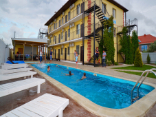 Гостевой дом "Приморский" - это идеальное место для проведения отпуска всей семьей или компанией друзей, а зимой у нас удобно остановиться в командировке или деловой поездке, в том числе и на длительный период. Гостевой дом "Приморский" был открыт в Краснодарском крае в 2010 году в отдельно стоящем здании, которое находится всего в 10-15 минутах ходьбы от моря, т.е. около 950 метров. Расположилось здание в тихом районе, по адресу: Темрюкский район, ст. Голубицкая, пер. Приморский, 8/Д. Наш район пока только застраивается, поэтому ваш отдых будет проходить в тихой, спокойной обстановке. Гостевой дом насчитывает 29 комфортабельных номеров с удобствами и располагает несколькими категориями номеров: "Стандарт" 4х-местный, "Стандарт семейный", "Стандарт улучшенный"; номера категории "Делюкс 2х-комнатный" оснащены гостевой зоной. На территории есть взрослый и детский бассейны с постоянной системой фильтрации воды. Взрослый бассейн окружён небольшой площадкой с шезлонгами, где вы сможете насладиться принятием солнечных ванн. Самые маленькие гости могут весело провести время на нашей детской площадке. Несомненно, вам придется по вкусу летняя беседка рядом с бассейнами с 10 большими столами и летней кухней, оснащенной всем необходимым оборудованием; на территории имеются мангалы. Большая парковка рассчитана на одновременную стоянку 18 машин, на территории парковки и гостевого дома для вашей безопасности ведется постоянное видеонаблюдение. В 100 м от гостевого дома «Приморский» расположена остановка общественного транспорта, а значит, вы с легкостью сможете добраться до всех достопримечательностей, а также крокодиловой фермы, дельфинария, океанариума и многого другого. Всего в 10 минутах ходьбы супермаркет «Магнит», аптеки и небольшие торговые ряды. Наши радушные администраторы с удовольствием ответят на все интересующие вас вопросы, помогут сориентироваться в станице, а так же закажут такси или столик в ресторане. Смена белья и полотенец, а также уборка номерах повышенной комфортности производится каждые 4 дня, в номерах "Стандарт" - каждые 5 дней. Мы постараемся сделать все от нас зависящее, чтобы ваше пребывание в гостевом доме «Приморский» на Азовском море оставило только приятные впечатления! Если у вас есть вопросы, с удовольствием ответим на них по телефону или электронной почте.