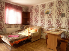 | Мебель: | односпальные и двуспальная кровати, диван-кровать, шкаф, стулья, прикроватные тумбочки, стол, вешалка, зеркало, кухонный гарнитур, обеденная зона |