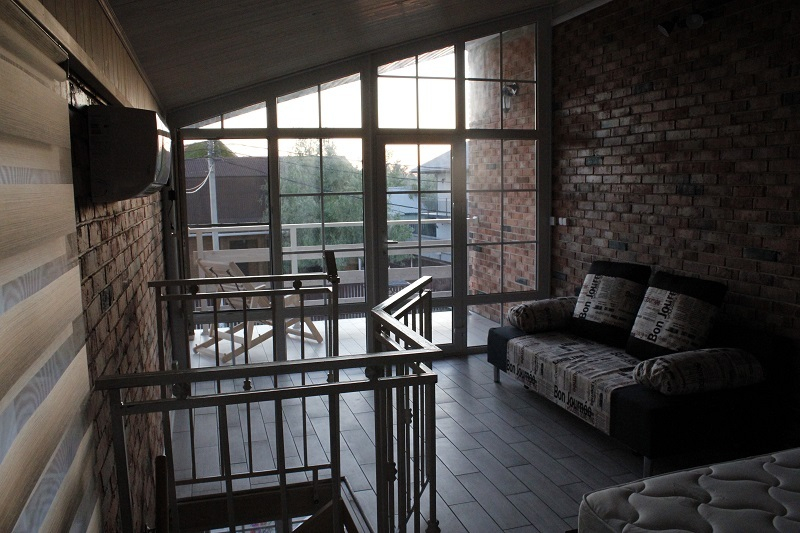 На 2 этаже: двухспальная кровать и двухспальный диван.
