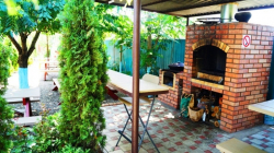Территория гостевого дома озеленена фруктовыми деревьями и виноградными беседками. На данной территории расположены комфортные европейские столы для отдыха в любое время суток. К этой территории примыкает шашлычная зона, включающая в себя "мангал" и "казан", предоставляемые для наших гостей бесплатно. В любое удобное для Вас время.