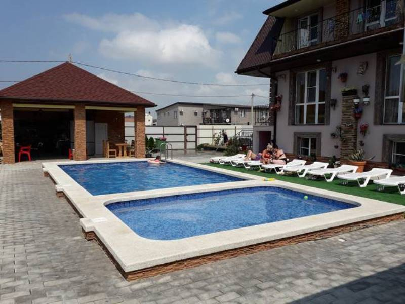 | К Вашим услугам (дополнительно) | - трансфер (платно) - Wi-Fi интернет - бассейн детский - бассейн взрослый - мангал - зеленый двор - беседка - места для отдыха во дворе - гладильная + утюг |