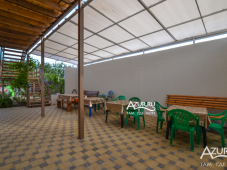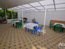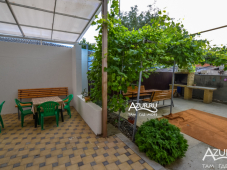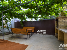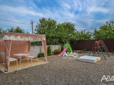 На территории дома есть детская площадка, беседка, мангальная зона, общая летняя кухня. Гости могут воспользоваться стиральной машиной. Двор ухожен и озеленен. Парковка автомобилей перед оградой. Со стороны улицы имеется место для курения в тени. Работает Wi-Fi.