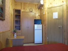 | Удобства: | вентилятор (по требованию), сплит-система, телевизор, холодильник, балкон - в номере эл. чайник, посуда - на этаже |