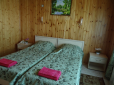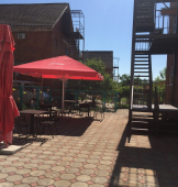 В первом трехэтажном здании на первом этаже располагается уютное кафе, где гости могут порадовать себя домашней кухней по предложенному меню (завтрак бесплатно). Два раза в неделю предлагается свежая выпечка. На втором и третьем этажах находятся однокомнатные и двухкомнатные 2х-3х-4х-местные номера. Имеется беседка с кухней для самостоятельного приготовления.