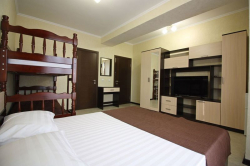 | Удобства: | кондиционер, телевизор, спутниковое ТВ, интернет, холодильник, эл. чайник, фен, сейф, посуда, балкон |