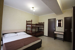 | Мебель: | двуспальная или двухъярусная кровати, шкаф, стулья, прикроватные тумбочки, туалетный столик, прихожая, вешалка, зеркало |