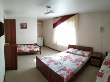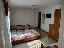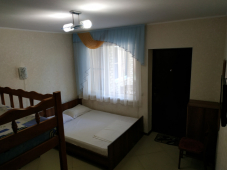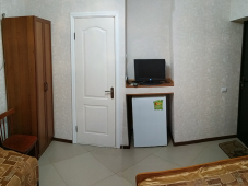 | Удобства: | кондиционер, телевизор, кабельное ТВ, интернет, холодильник, эл. чайник, СВЧ, посуда, сейф, балкон, кухня (на этаже на 2 номера) |