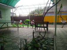 | К Вашим услугам (дополнительно) | - трансфер (платно) - стиральная машина - Wi-Fi интернет - гладильная + утюг - детская площадка - мангал - СВЧ - зеленый двор - беседка |