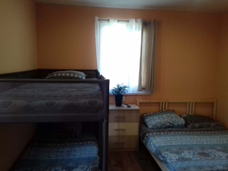 | Мебель: | двуспальные кровати, двухъярусная кровать, шкаф, журнальный столик, комод, зеркало, кухонный гарнитур, обеденная зона |
