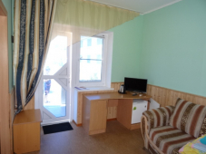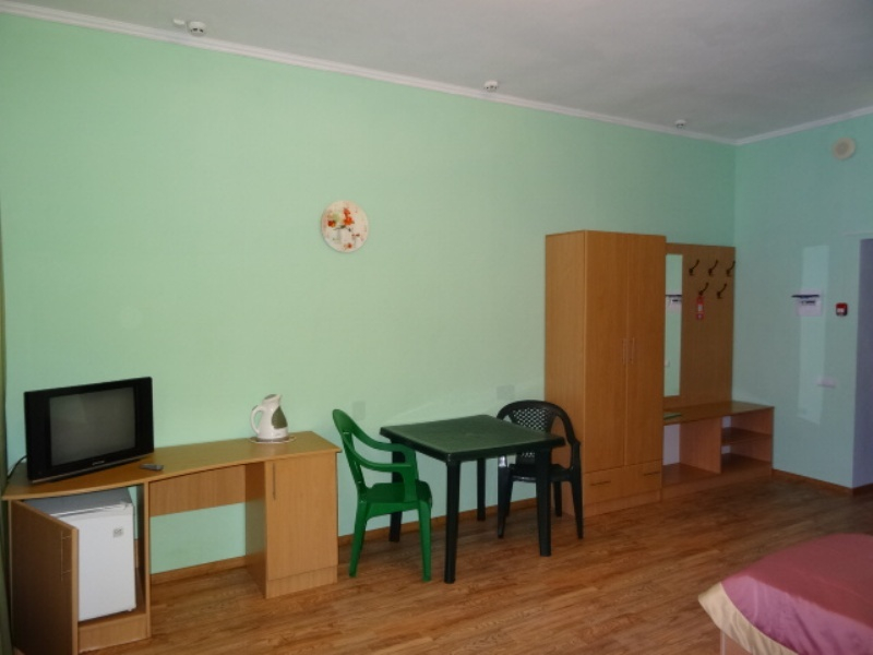 | Питание | кухня в номере (самостоятельно) + столовая (2х-разовое питание: обед, ужин - 660 руб.; 3х-разовое питание: завтрак, обед, ужин - 910 руб.; завтрак - 250 руб., обед - 360 руб., ужин - 300 руб.) |