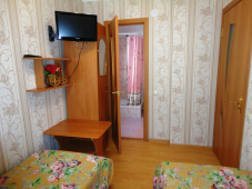 - 3х и 4х-местные номера "Эконом": в каждом номере имеется сплит-система, Wi-Fi интернет, телевизор, двуспальные и односпальные кровати или диван, шкаф для одежды, тумбочки, стол. Санузел с душем на 3 номера.