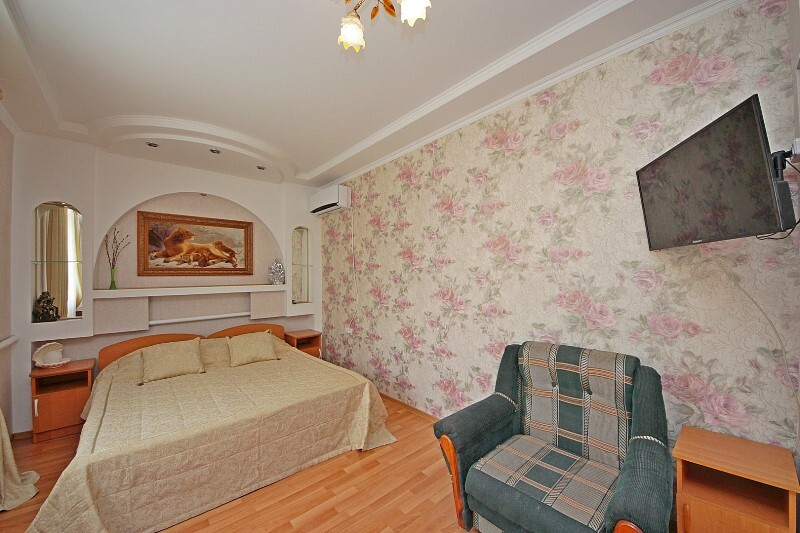 - номера ПК (3х-мест. и 4х-мест.): в каждом из номеров имеется санузел с душем, кондиционер (сплит-система), Wi-Fi интернет, телевизор, холодильник, двуспальные и односпальные кровати или диван, шкаф для одежды, тумбочки, стол. На 2 номера полностью оборудованная кухня для самостоятельного приготовления пищи, 2 балкона.