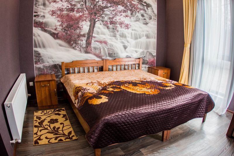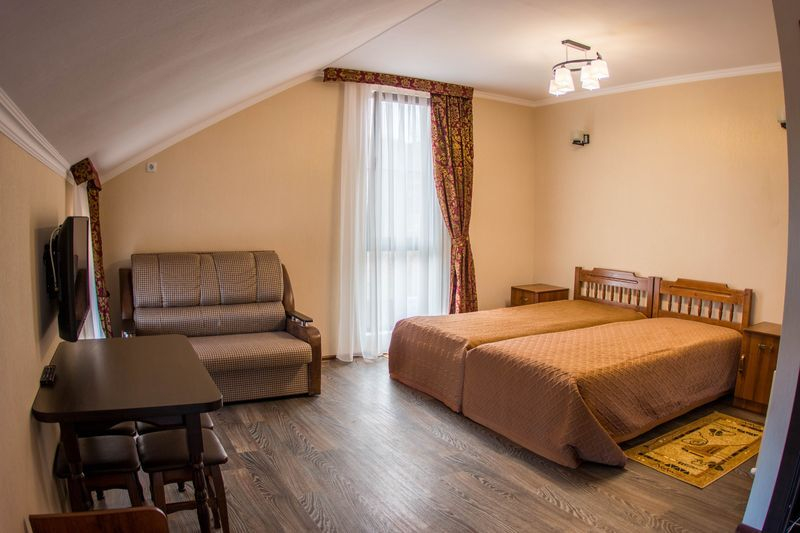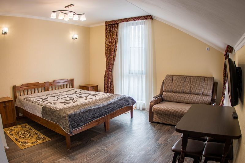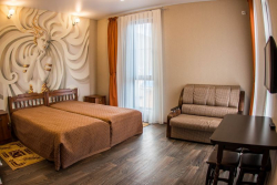 | Мебель: | двуспальная кровать, диван-кровать, шкаф, стулья, прикроватные тумбочки, стол |