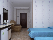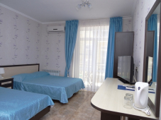 Номерной фонд гостевого дома "Иллиада" в Витязево представлен 30 номерами категории "Люкс", в которых одновременно могут расположиться до 90 человек.