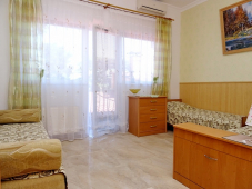 | Удобства: | сплит-система, телевизор, интернет, холодильник, посуда, чайник, балкон (в 4х-местных номерах), выход на общую террасу c видом на море, оборудованную столиками и стульями для отдыха |