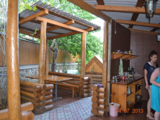 Во дворе гостиницы уютный дворик с деревянными беседками для отдыха, летняя кухня с двумя плитами и мойками, и всем необходимым для самостоятельного приготовления пищи. Сама гостиница трехэтажная с 9 номерами, в которых имеется санузел с горячей водой, небольшой холодильник, телевизор, кабельное ТВ, кондиционер, Wi-Fi. Воспользоваться стиральной машиной можно за отдельную плату. По договорённости можем встретить в аэропорту.