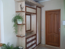 | Мебель: | двуспальная кровать, диван-кровать, стулья, шкаф, стол, прихожая, вешалка, зеркало, кухонный гарнитур, обеденная зона |