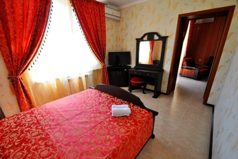 | К Вашим услугам (дополнительно) | - трансфер (платно ст. Тоннельная - 1500 руб. ж/д и автовокзал Анапы - бесплатно) - прачечная - гладильная + утюг (на каждом этаже) - детская площадка - благоустроенный двор, территория - бассейн открытый с подогревом (с детским отделением и гейзером) - Wi-Fi интернет - детская анимация - лифт |