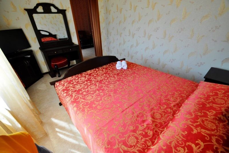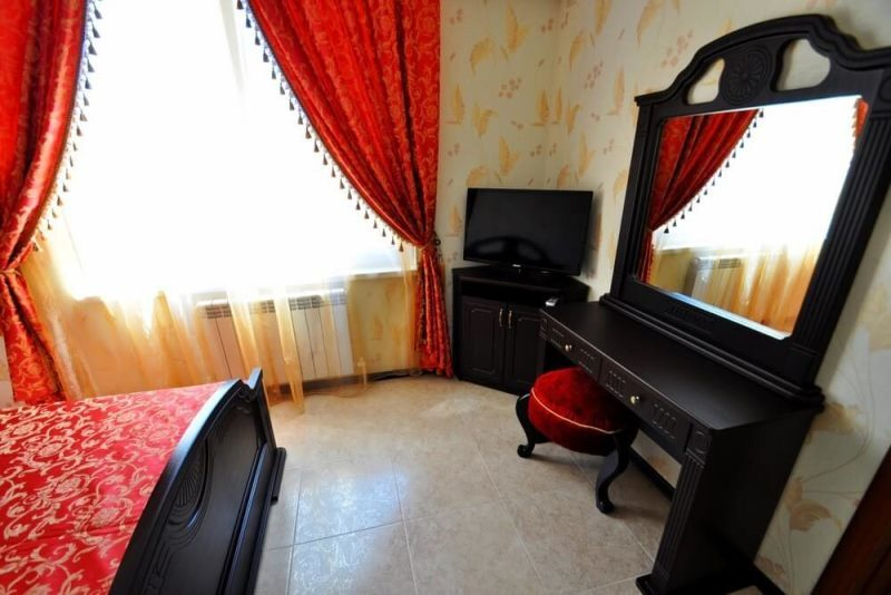 | Мебель: | двуспальная кровать, шкаф, прикроватные тумбочки, туалетный столик, зеркало |