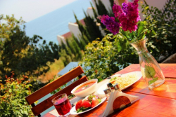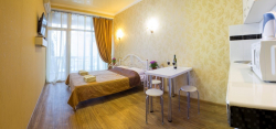 Все номера - комфортабельные и просторные, с современной мебелью и ремонтом, ортопедическими кроватями, большим плазменным телевизором, кухней, шикарным балконом с панорамным видом на море и горы.