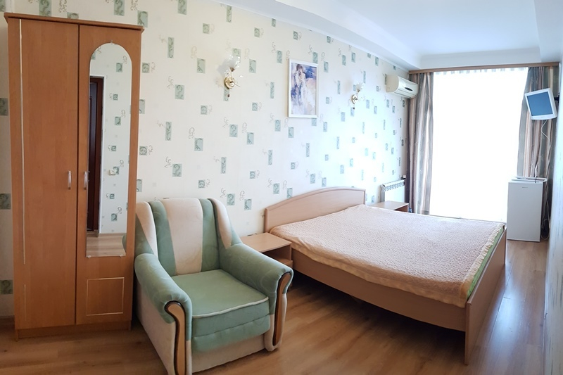 В каждом номере: кондиционер, сейф, фен, телевизор с кабельным TV, холодильник, чайник, санузел, балкон (со столиком и стульями для отдыха), шезлонг (только в номере Студио), есть 2 общие кухни. В "Семейном" номере и в номере "Студио" - кухня в номере. Ежедневная уборка номеров.