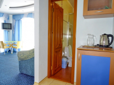 | Удобства: | кондиционер, телевизор, кабельное ТВ, сейф (на ресепшене), холодильник, фен, эл. чайник, посуда, интернет, балкон |
