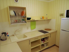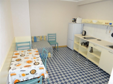 | Мебель: | односпальные или двуспальная кровати, диван-кровать, шкаф, стулья, стол, комод, вешалка, зеркало, кухонный гарнитур |