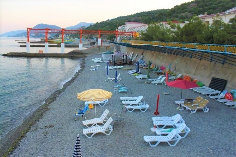 Ухоженная и охраняемая территория способствует безопасному отдыху. Здесь своя уникальная природа, множество кипарисов, туй и пальм. На территории благоустроенная набережная, детская площадка, собственный охраняемый пляж, где может комфортно отдохнуть каждый гость. Есть кафе, магазины. У нас удобно, комфортно и совершенно не шумно. До центральной набережной пешком 20 минут или можно доехать маршрутным автобусом.