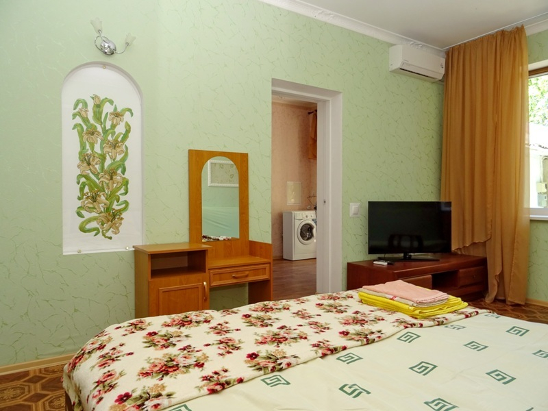 | Мебель: | односпальные и двуспальная кровати, диван-кровать, шкаф, стулья, прикроватные тумбочки, зеркало, кухонный гарнитур, обеденная зона |