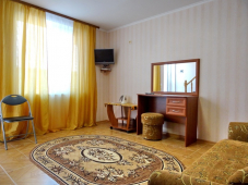 | Мебель: | двуспальная кровать, диван-кровать, стулья, шкаф, прикроватные тумбочки, журнальный столик, туалетный столик, стол |