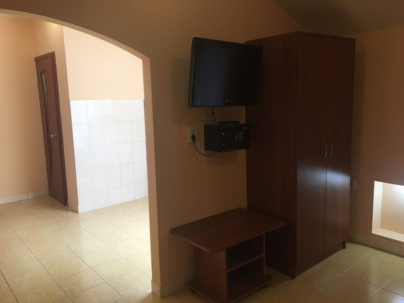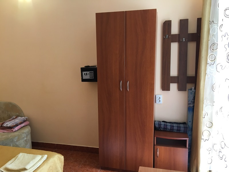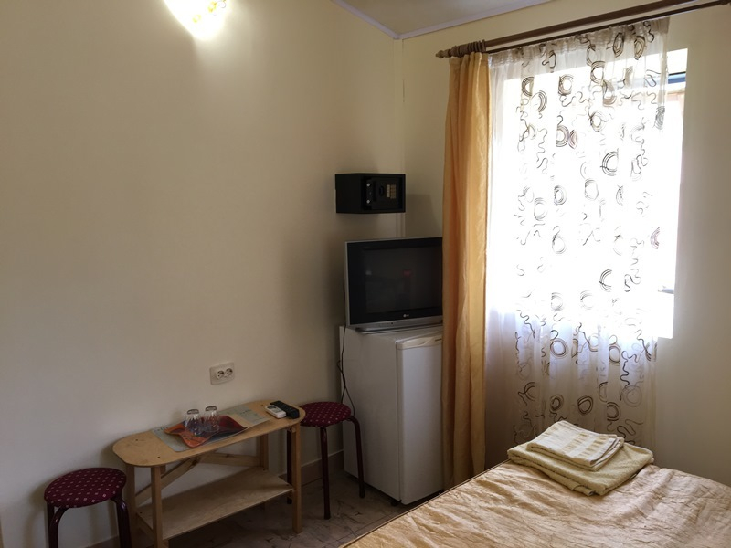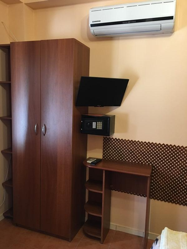 В каждом нашем номере: спальные места, тумбочки, шкаф, трюмо, телевизор с кабельным ТВ, холодильник, кондиционер, сейф. В санузле: унитаз, душевая кабинка, фен, сушилка для белья, мелкие курортные вещи – зонтик, пляжная подстилка. В некоторых номерах есть возможность платной установки дополнительного места (для ребенка до 3 лет - кроватка манежик, для ребенка старше 3 лет - раскладушка). Так как не во всех номерах данной категории возможна установка дополнительного места для ребенка, данную услугу уточняйте заранее.