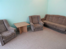 | Мебель: | односпальные кровати, кресла, шкаф, стол, вешалка, зеркало, кухонный гарнитур, обеденная зона |