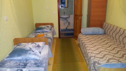 Предлагаем 10 (3х, 4х-местных номеров) с удобствами. Категория номеров: "Полулюкс", "Стандарт улучшенный", "Стандарт", "Обычный". Каждый номер имеет свой выход на улицу. В каждом номере есть санузел, необходимая мебель (кровати, тумбочки, стол, табуретки, шкаф), телевизор, постельное белье, полотенце. Есть номера с кондиционером.