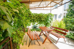 | К Вашим услугам (дополнительно) | - трансфер (по запросу от/до аэропорта г. Симферополь) - стиральная машина (платно) - Wi-Fi интернет - мангал - детская площадка - зеленый двор - беседки - гладильная + утюг - видеонаблюдение - настольный теннис |