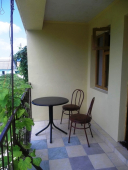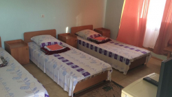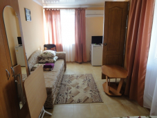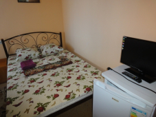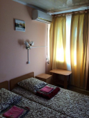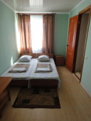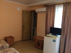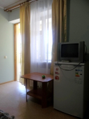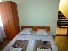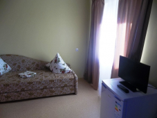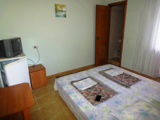 | Мебель: | односпальные (в 3х, 5-местных номерах) или двуспальная кровать, диван-кровать, шкаф, прикроватные тумбочки, журнальный столик, вешалка, зеркало, стол и стулья (на балконе) |