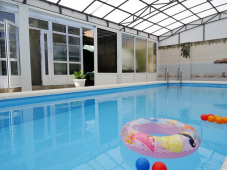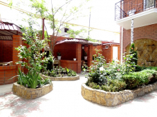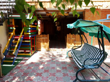 | К Вашим услугам (дополнительно) | - трансфер (по договору) - Wi-Fi интернет (в каждом номере) - гладильная + утюг - прачечная (платно) - СВЧ (на кухне) - зеленый двор - летние беседки - детская площадка - бассейн - сейф (общий бесплатно) - бадминтон - библиотека - организация экскурсий - организация детских праздников и дней рождений (бесплатно) - организация профилактического лечения (центр Бубновского, пансионат Черноморская Зорька) - диван-качели - водопад |