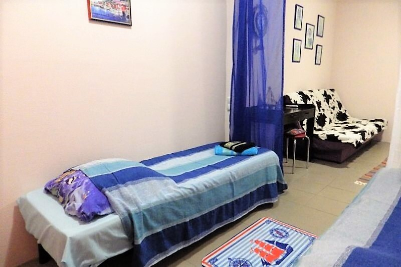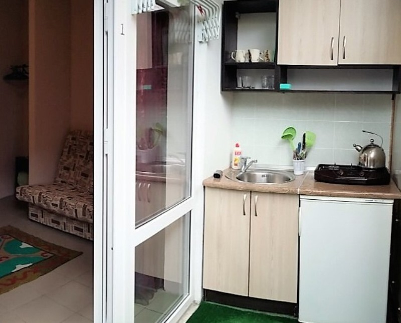 | Мебель: | 2 односпальные кровати, диван-кровать, шкаф, стулья, прикроватные тумбочки, стол, кухонный гарнитур, мини-кухня на балконе |
