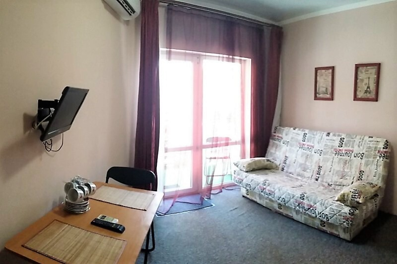 | Удобства: | кондиционер, телевизор, кабельное ТВ, интернет, холодильник, газовая плита, посуда, балкон |