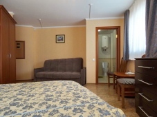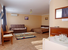 К услугам отдыхающих предлагаем современные номера, оборудованные удобной мебелью, кондиционером, холодильником, телевизором. В каждом номере ванная комната с душевой кабиной (холодная и горячая вода круглосуточно). К услугам гостей предлагаем: бесплатный Wi-Fi, кафе, экскурсии, магазины. Мы будем рады видеть Вас и поможем сделать ваш отдых незабываемым. Наш отель находится в самом сердце курортного городка, в окружении кафе, ресторанов и магазинов.
