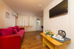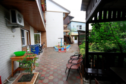 | К Вашим услугам (дополнительно) | - трансфер (платно) - стиральная машина (платно) - гладильная + утюг - Wi-Fi интернет (бесплатно) - зеленый двор - летняя беседка - мангал во дворе - детская площадка - фильмотека для детей - вызов врача (бесплатно) - предоставление аптечки (бесплатно) - организация экскурсий - детская комната с воспитателем (бесплатно) - детская анимация (бесплатно) - детская кроватка (бесплатно) - детская коляска (платно - 100 руб./сутки) - деткие стульчики (бесплатно) - детские горшки (бесплатно) - сушилки для белья у номера - холодильники с напитками |